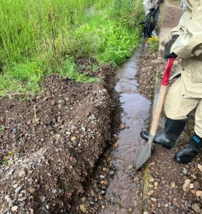 ・用水路にたまった土砂を撤去する作業を行いました。1月の震災に続いて9月の豪雨で被害が拡大し、ボランティアのニーズも増えているとのことでした。現地の方は、ボランティアに関しては人手不足をあまり感じてはいませんが、それよりも被災から時間が経ったことで報道なども減り世間の関心が薄れていることの方を深刻に感じているようです。単発で終わらず、今後も継続的に支援をお願いしたいとのことでした。次回以降も機会があればまた参加したいと思います。(M.M.)